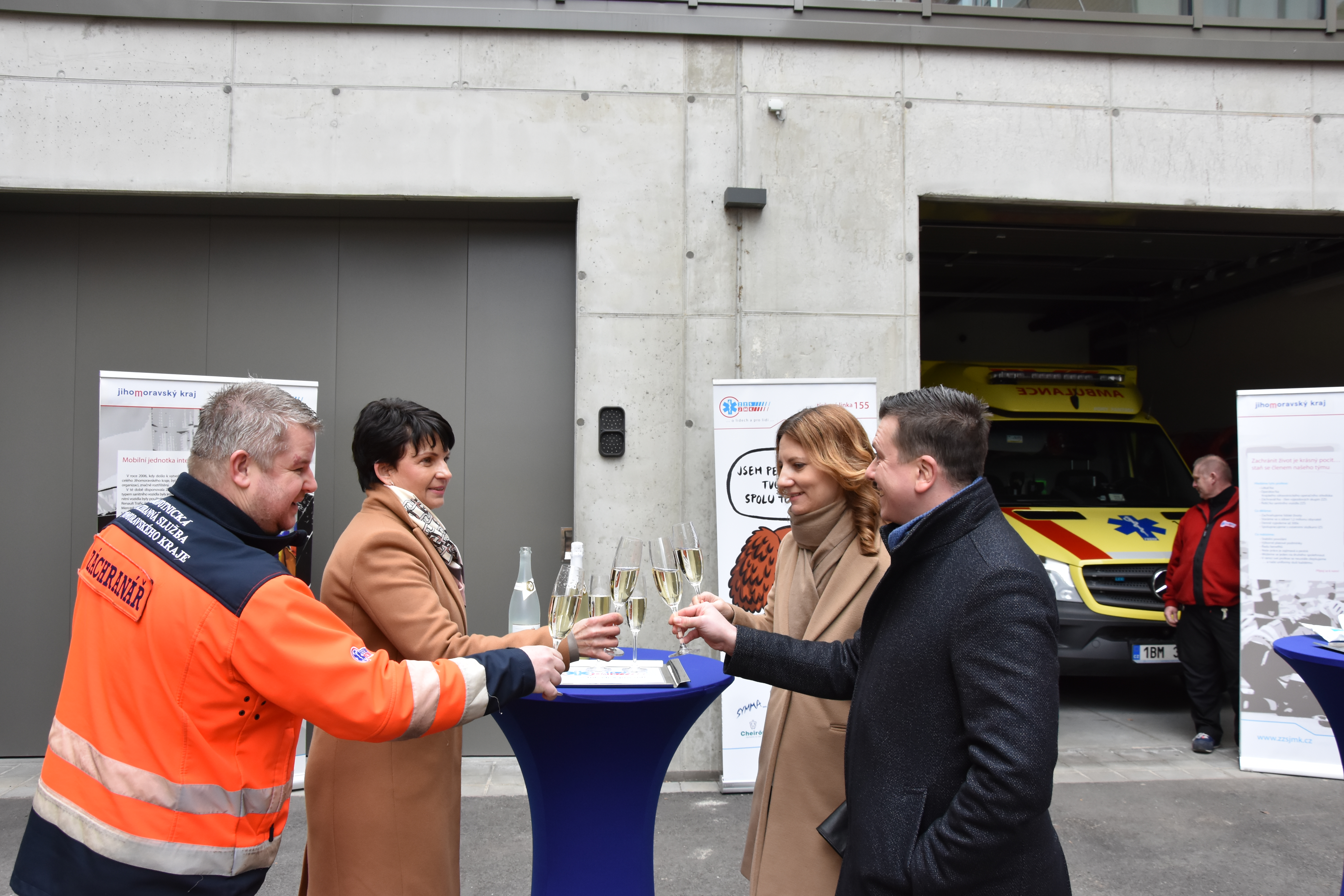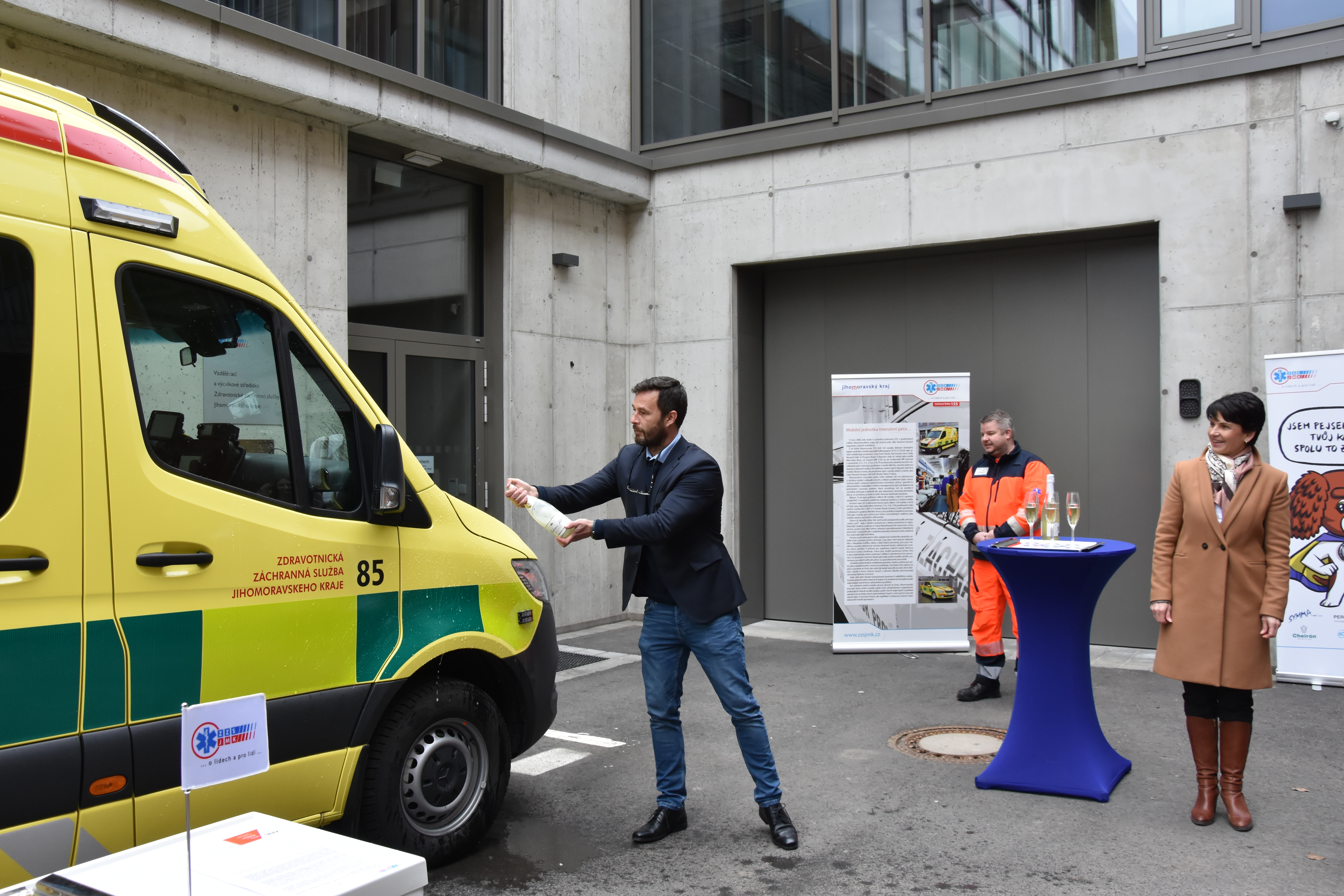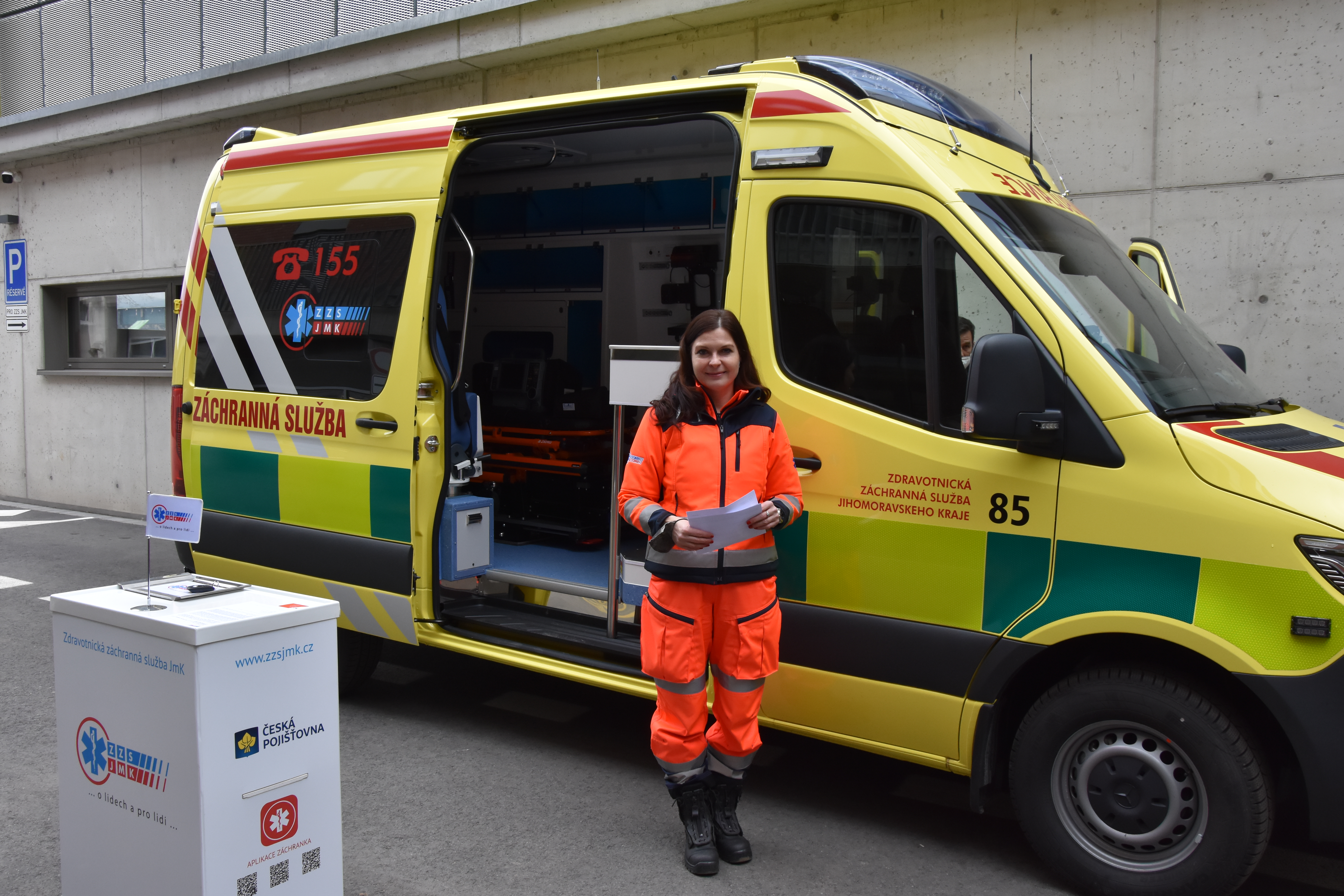 Klíče od vozu dnes z rukou primátorky Markéty Vaňkové převzala ředitelka ZZS JmK Hana Albrechtová. Slavnostního aktu se zúčastnil také krajský radní pro zdravotnictví Jiří Kasala a další hosté. Nové vozidlo na podvozku Mercedes-Benz Sprinter řady 419 CDI má zabudovanou kompletní zdravotnickou zástavbu a všechny výstražné a další systémy. „Děkujeme vedení města Brna za třetí sanitku, obzvlášť teď se nám opravdu hodí. Dlouhodobě se potýkáme s nedostatkem vozidel, na což měla vliv i covidová pandemie. Takže toto auto je pro nás opravdu přínosem, zařadíme jej do vozového parku výjezdové základny v Brně - Bohunicích,“ vysvětluje Hana Albrechtová, ředitelka jihomoravské záchranky.