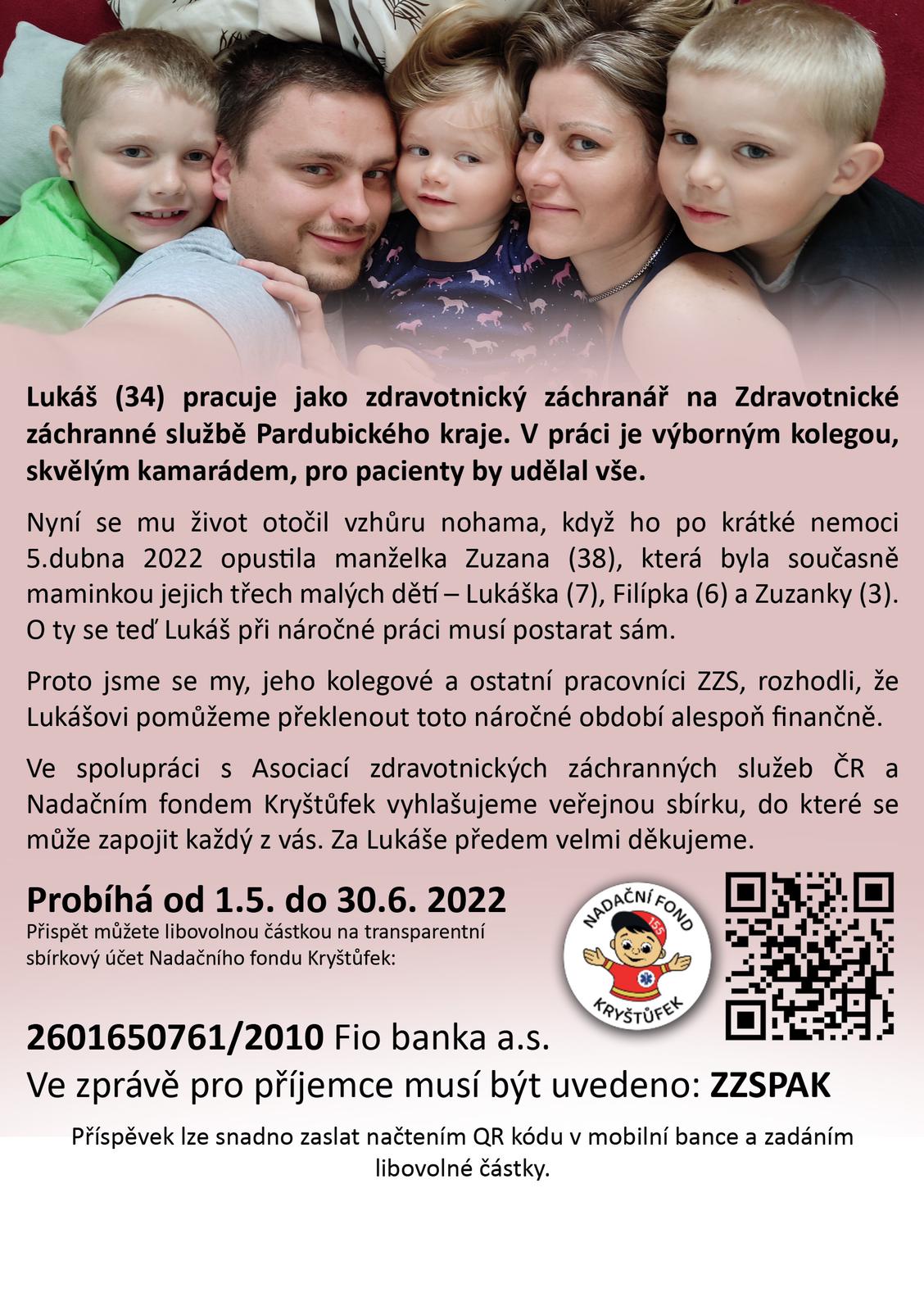 Proto jsme se my, jeho kolegové a ostatní pracovníci ZZS Pardubického kraje, rozhodli, že Lukášovi pomůžeme překlenout toto náročné období alespoň finančně.