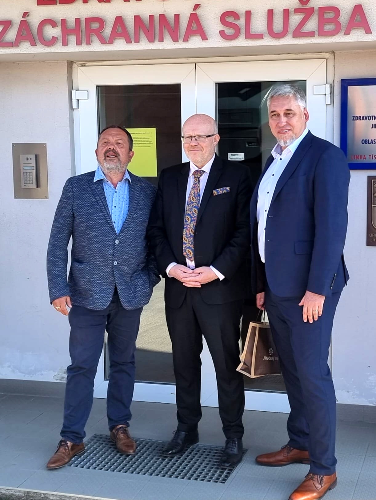 S ředitelem Zdravotnické záchranné služby Jihočeského kraje a prezidentem Asociace zdravotnických záchranných služeb ČR MUDr. Markem Slabým, MBA, LL.M projednal pan ministr možnosti vícezdrojového financování zdravotnických záchranných služeb a nyní aktuální problematiku možnosti členů Integrovaného záchranného systému odejít do předčasného důchodu bez sankce.