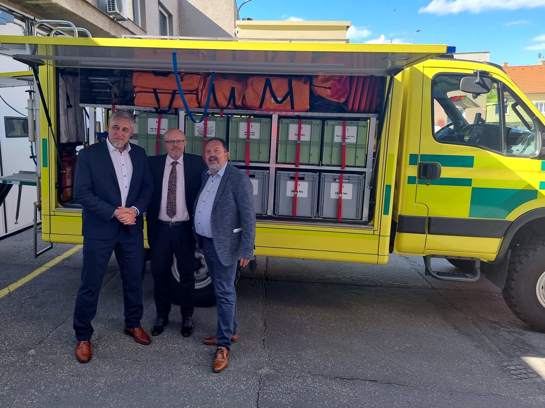 Místopředseda vlády a ministr zdravotnictví ČR prof. MUDr. Vlastimil Válek, CSc., MBA, EBIR navštívil v pondělí 6.června jihočeský kraj. Součástí cesty byla také návštěva výjezdové základny zdravotnické záchranné služby v Táboře, kde jsme panu ministrovi představili náš vozový park, včetně vozidla pro řešení a likvidaci mimořádné události.