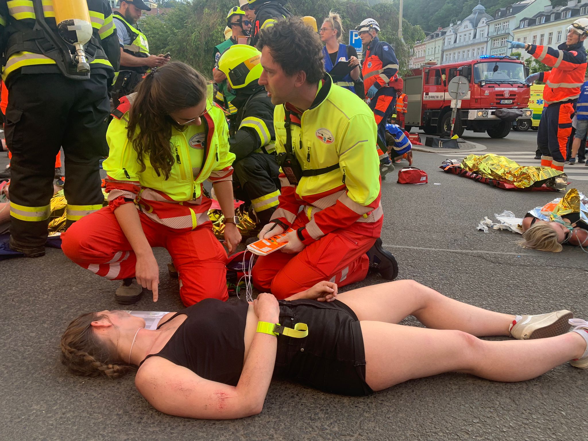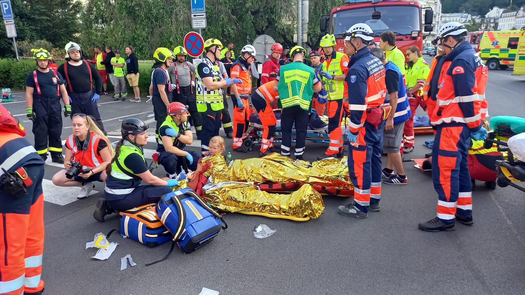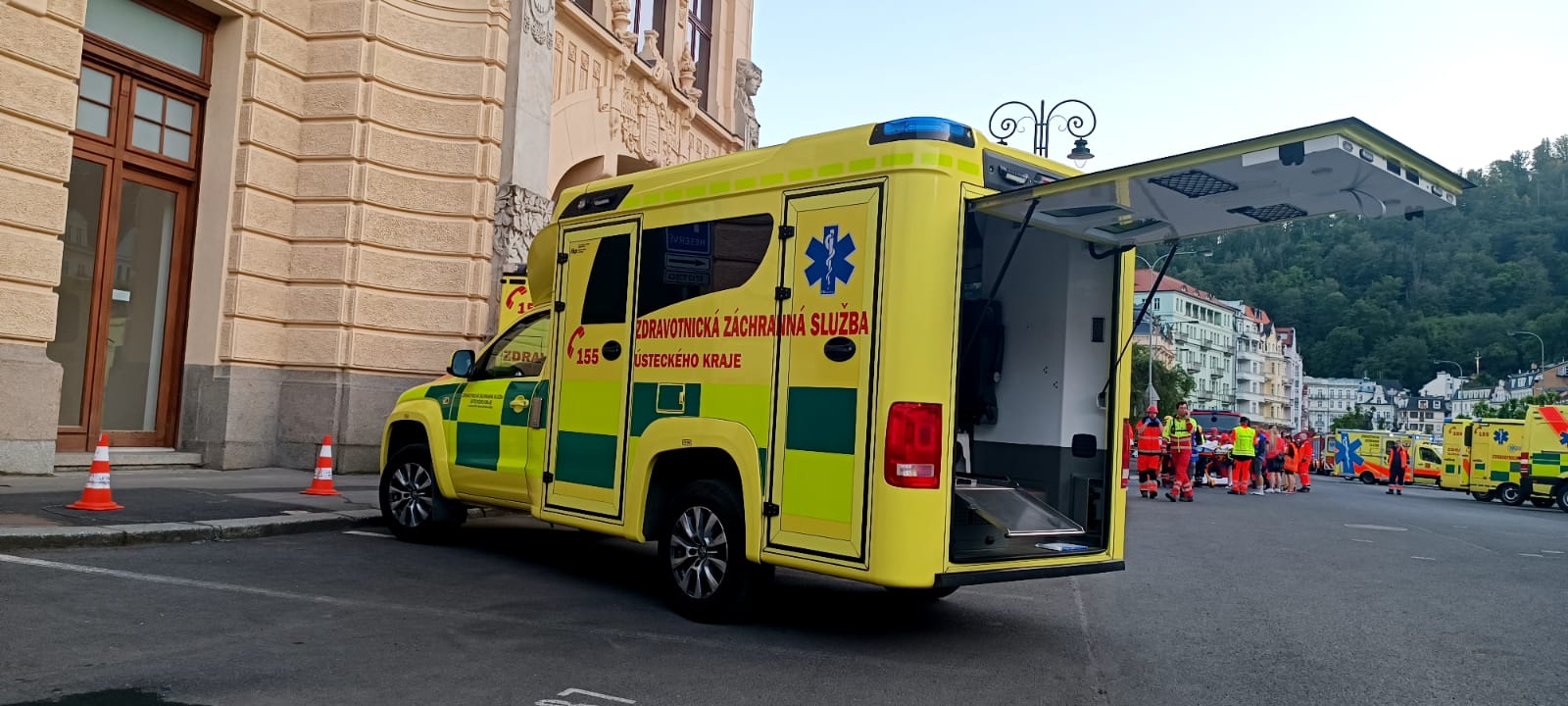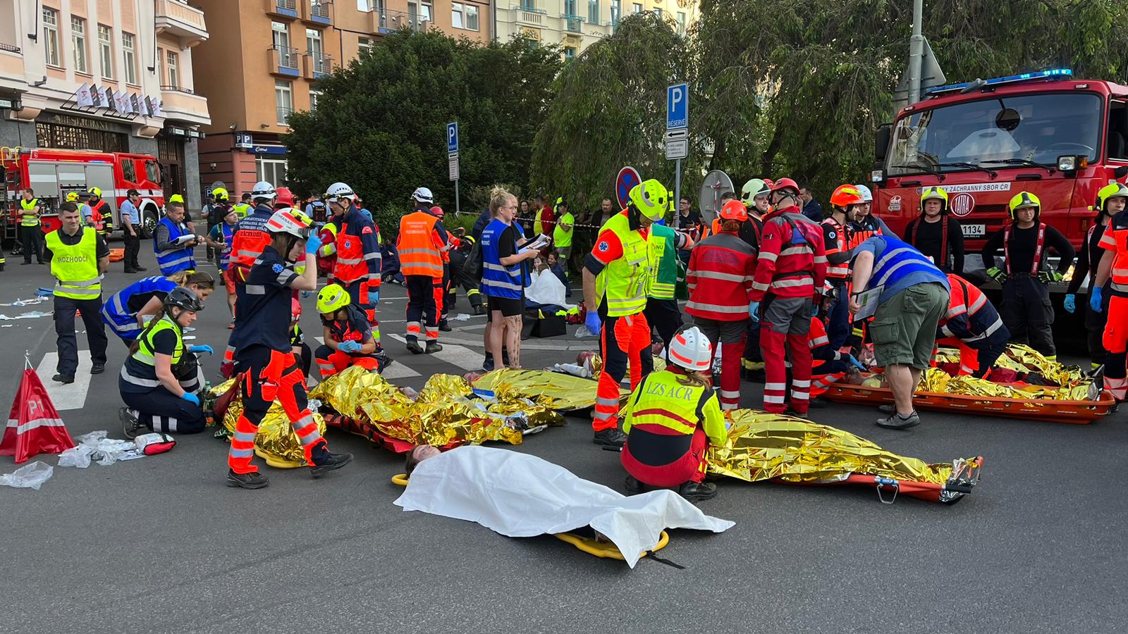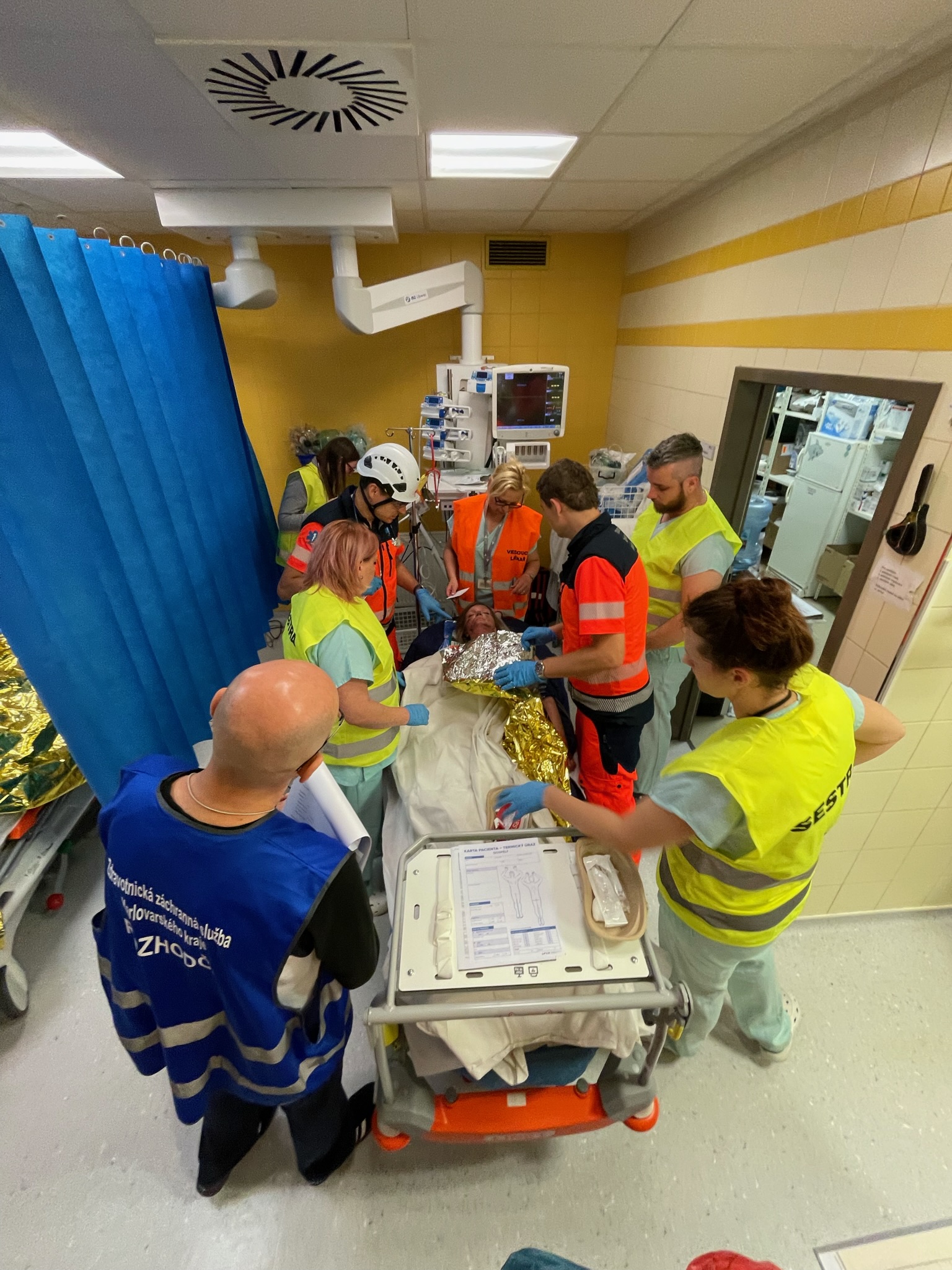 Atraktivní lokality na Karlovarsku a Sokolovsku byly po tři dny dějištěm celorepublikového cvičení zdravotnických záchranných služeb, a také celokrajového cvičení složek IZS. Program započal v pátek 2. června mimořádnou událostí s hromadným postižením osob nazvanou ´Lanovka 2023´. „Dle scénáře dochází v podvečerních hodinách k závadě na elektroinstalaci v dolní stanici podzemní lanové dráhy Imperial na Divadelním náměstí v Karlových Varech, kde se v tu chvíli nachází zhruba 50 osob. Vypukne požár a uzavřený prostor je velmi rychle zakouřen, dochází k chaosu a neřízené evakuaci, na místě vzniká davová panika a velký počet zranění u přítomných osob,“ popsal námět společného cvičení všech složek IZS ředitel karlovarské záchranky Jiří Smetana. Zdravotnickým operačním střediskem je na místo postupně vysláno 14 nelékařských výjezdových skupin RZP, tři lékařské posádky RV, jedna lékařská posádka LZS Plzeň a jeden logistický speciál ZZS KVK. „Velkým specifikem této mimořádné události byla přítomnost 14 různých posádek zdravotnických záchranářů ze všech krajů z celé republiky, což s sebou přineslo ještě větší prostor pro jednotlivé výjezdové skupiny procvičit si komunikaci napříč složkami IZS, ale i napříč různými záchrankami,“ doplnil ředitel Smetana. Tématem cvičení byly termické úrazy - popáleniny, a proto se jej kromě krajských zdravotnických zařízení (KKN Nemocnice Karlovy Vary a Cheb, Nemocnice Sokolov) zúčastnila také FN Královské Vinohrady a FN Plzeň. Autenticky namaskovaní figuranti byli z řad mediků a dobrovolných záchranářů z plzeňského spolku Life Saving Support, dobrovolníků nejenom z karlovarské záchranky, a také studentů z karlovarské Střední zdravotnické školy.