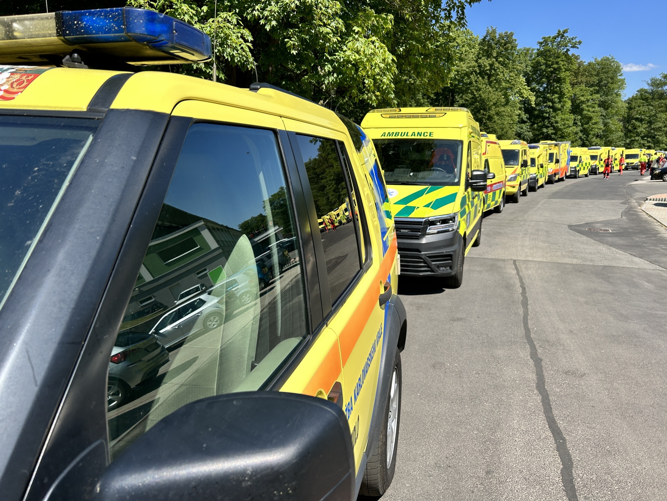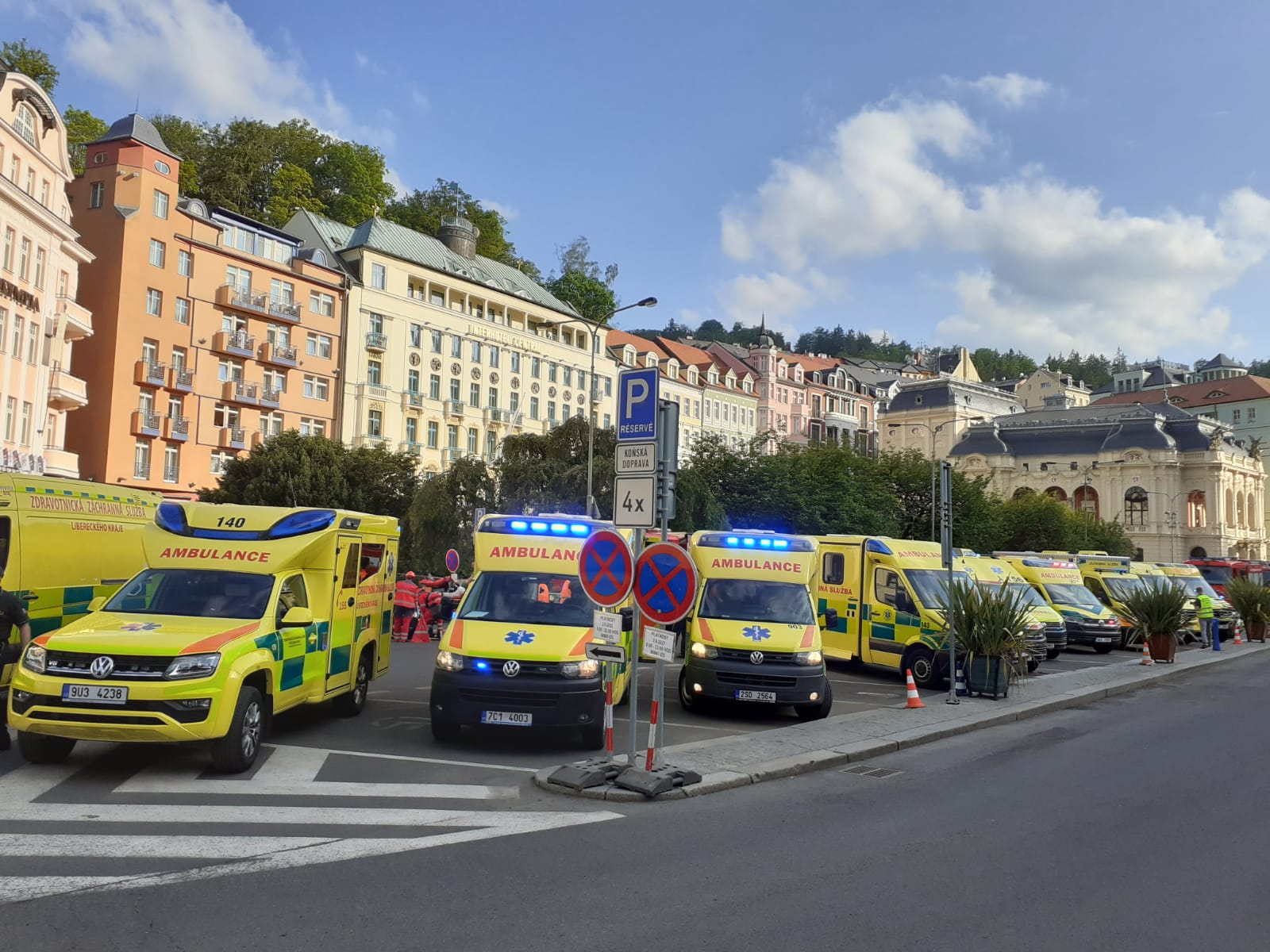 V okolí jednotlivých lokalit byl v pátek a především v sobotu zvýšený počet projíždějících sanitek se zapnutým světelným i zvukovým znamením. V neděli po poledni bylo metodické cvičení ´Karlovarská putovní 155´ zakončeno slavnostní spanilou jízdou všech 14 vozidel rychlé zdravotnické pomoci za doprovodu PČR z Březové u Karlových Varů, centrem města Karlovy Vary, ulicemi Plzeňská, Západní, Bezručova, Na Vyhlídce a Stará Pražská až k silnici R6 ve směru na Prahu.