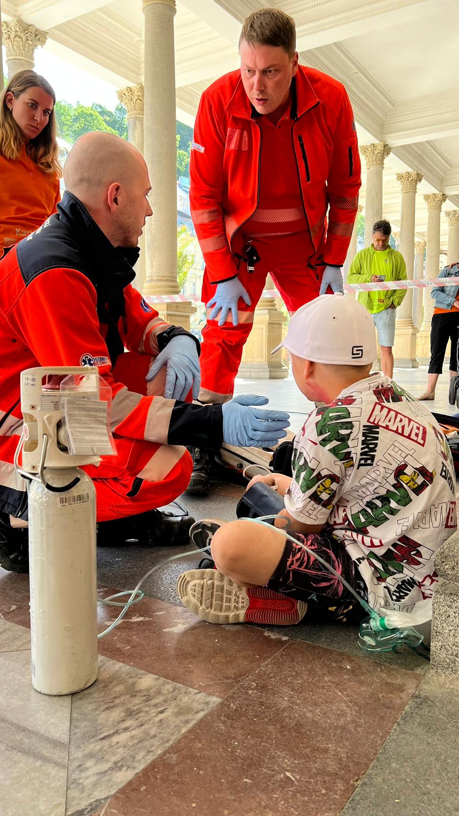 a přetrvávající poruchou vědomí, již bylo potřeba resuscitovat a inteligentní figurínu, která simulovala onu pacientku, následně defibrilovat. Profesionální zdravotničtí záchranáři si také v rámci jedné z úloh vyzkoušeli v Kulturním domě Dvorana v Lokti práci operátora zdravotnického operačního střediska. Potřísnění kyselinou akrylovou u pracovníka v chemickém průmyslu s rozsáhlými popáleninami a podrážděnými dýchacími cestami byl námět pro úlohu v chemickém závodě Synthomer v Sokolově. Dopravní nehoda elektromobilu se dvěma zraněnými testovacími jezdci na zadních sedačkách vozidla, jejíž příčinou byla hypoglykémie jednoho z řidičů a důsledkem vícečetná zranění, zaměstnala cvičící posádky na polygonu Vývojového centra BMW. Těhotná nezletilá dívka po kolapsu při sledování filmu v chodovském kině a německy mluvící malý chlapec s alergickou reakcí na oříšky v lázeňské oplatce, která se rozvinula až do anafylaktického šoku s nutností resuscitace, která se rovněž odehrávala na dětské inteligentní figuríně a za přítomnosti turistů na Mlýnské kolonádě, završili sedmičku pestrých zdravotnických úloh.