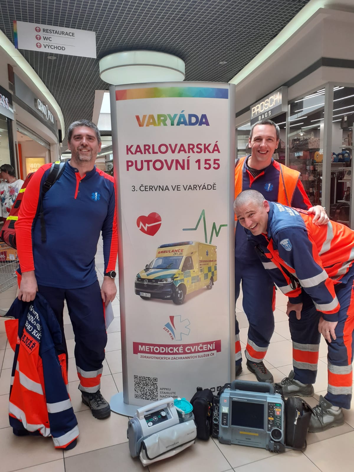 Na Svatošských skalách v CHKO Slavkovský les mimo dosah mobilního signálu a daleko od přístupové cesty absolvovali záchranáři na břehu řeky Ohře zdravotnickou úlohu, jejímž tématem byl syndrom z visu u amatérského horolezce. Naopak před zraky široké veřejnosti do Obchodního centra Varyáda je poslala výzva k ženě se zástavou oběhu