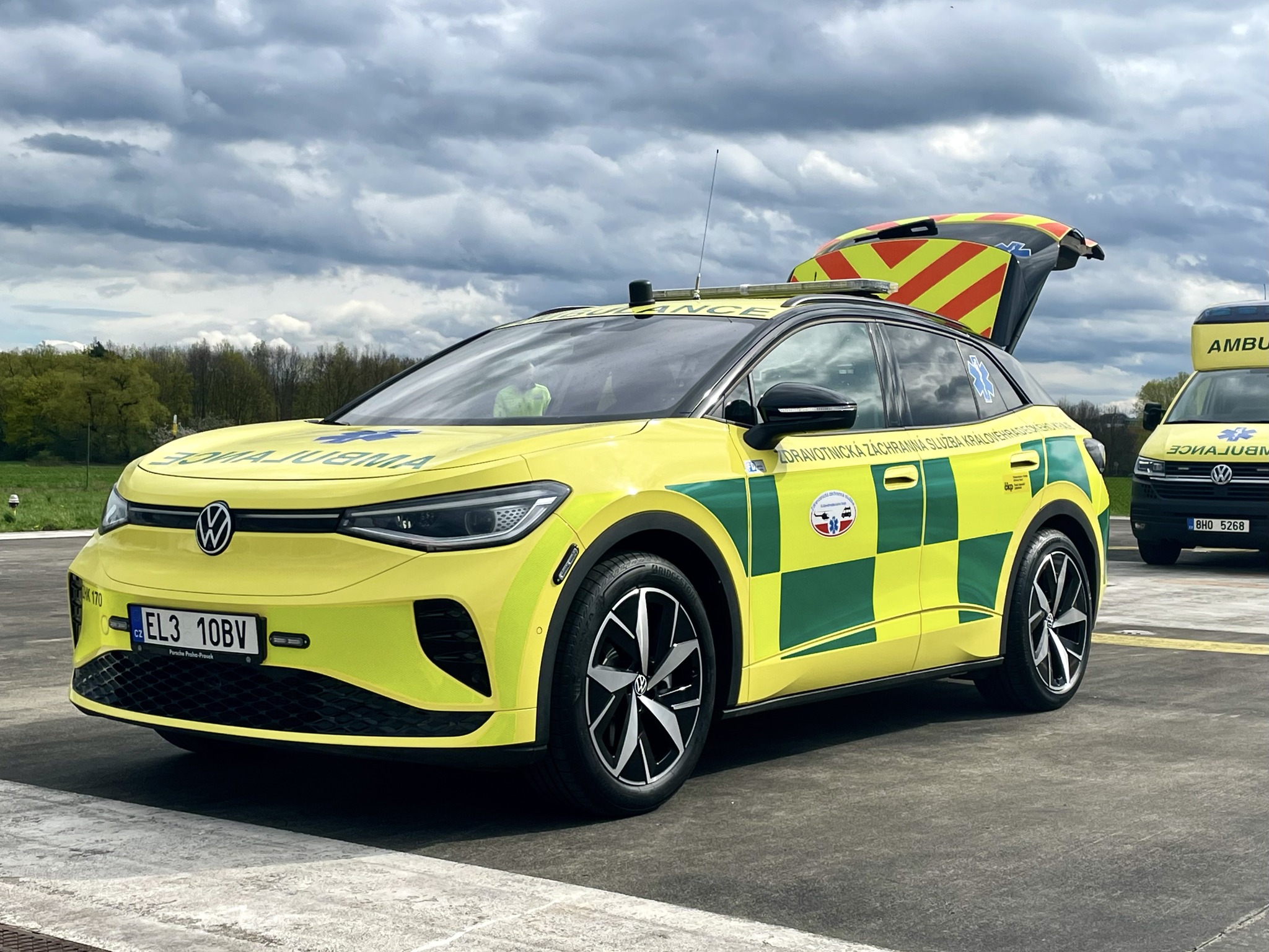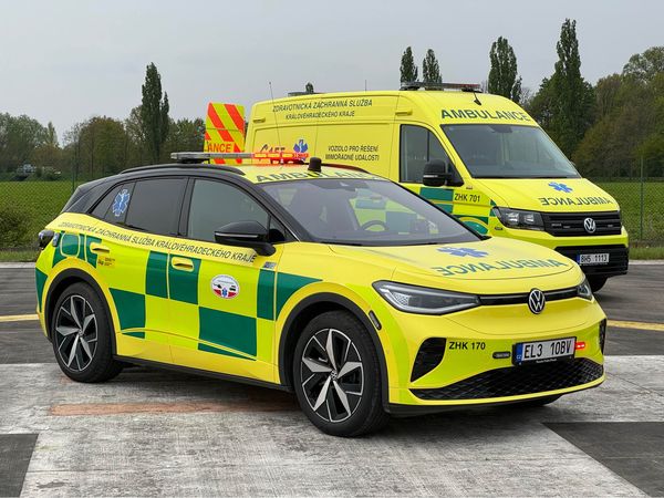 Doktor Truhlář k novému elektrovozu uvedl: „Speciálně upravený Volkswagen ID.4 GTX ve třísedadlové verzi bude od začátku května 2024 nasazen do provozu na výjezdové základně Hradec Králové. Důvodem pořízení elektromobilu jsou nižší provozní náklady, ideální jízdní vlastnosti a nižší poruchovost. Reference na čistě elektrické sanitky jsou ze zahraničních velkoměst velmi pozitivní. Volkswagen ID.4 disponuje pohonem všech kol. Výkon motoru 250 kW (340 k) zajišťuje zrychlení z 0 na 100 km/h za 6,2 sekundy. Kapacita akumulátoru 77 kWh umožňuje při spotřebě 17,8 kWh/100 km dojezd až 480 km v běžném provozu. Lékařská posádka v krajském městě přitom ujede v průměru 55 km za 24 hodin, takže nepotřebujeme auto s dojezdem více než 100 km. Mezi jednotlivými výjezdy jsou ke kabelu připojena všechna zásahová vozidla bez ohledu na druh pohonu. Nabíjecí stanice jsou aktuálně nainstalovány na dvou výjezdových základnách na území města. Napájení zdravotnických přístrojů, radiokomunikačních technologií a výstražného zařízení je řešeno oddělenou elektroinstalací se samostatným akumulátorem. Rozšíření elektrických vozidel na jiné základny aktuálně nepovažujeme za vhodné. Zde budeme nadále používat flotilu několika desítek sanitních vozů se vznětovými motory.“